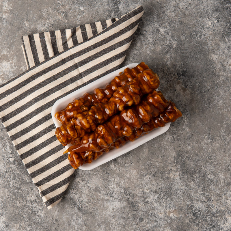 Doğal cevizlerin üzüm pekmeziyle buluştuğu Cevizli Sucuk, geleneksel kurutma yöntemiyle hazırlanır. Tatlı ihtiyacını doğal yollarla karşılayan, enerji veren yöresel bir lezzettir.
